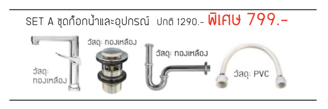 ชุดก๊อก และอุปกรณ์ติดตั้ง อ่างล้างหน้า Set A