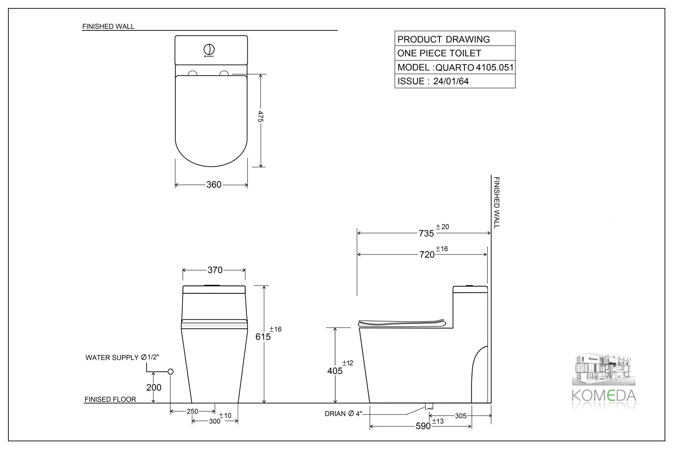 | ระยะกึ่งกลางท่อน้ำทิ้งถึงผนัง | 305 mm. |