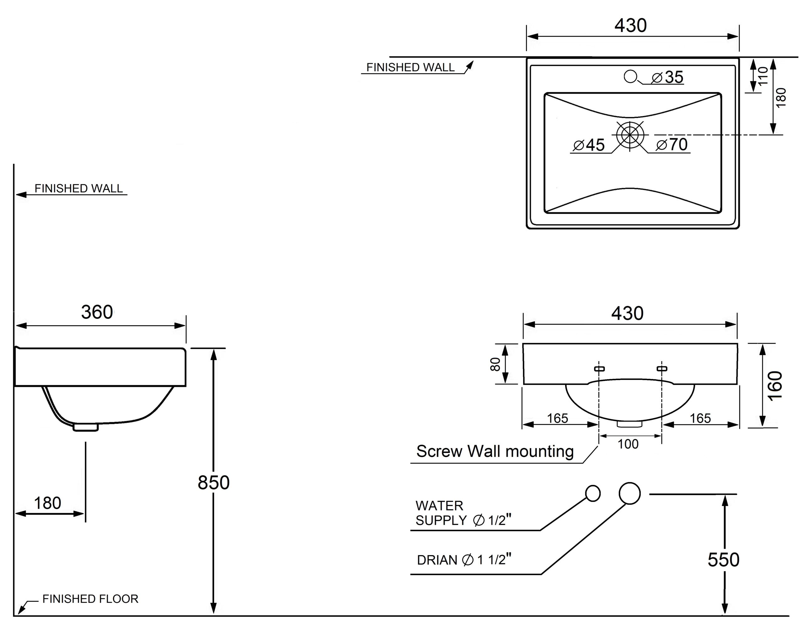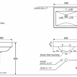 ขนาด 430 x 350 x 160 mm แถมอุปกรณ์น๊อตยึดอ่าง